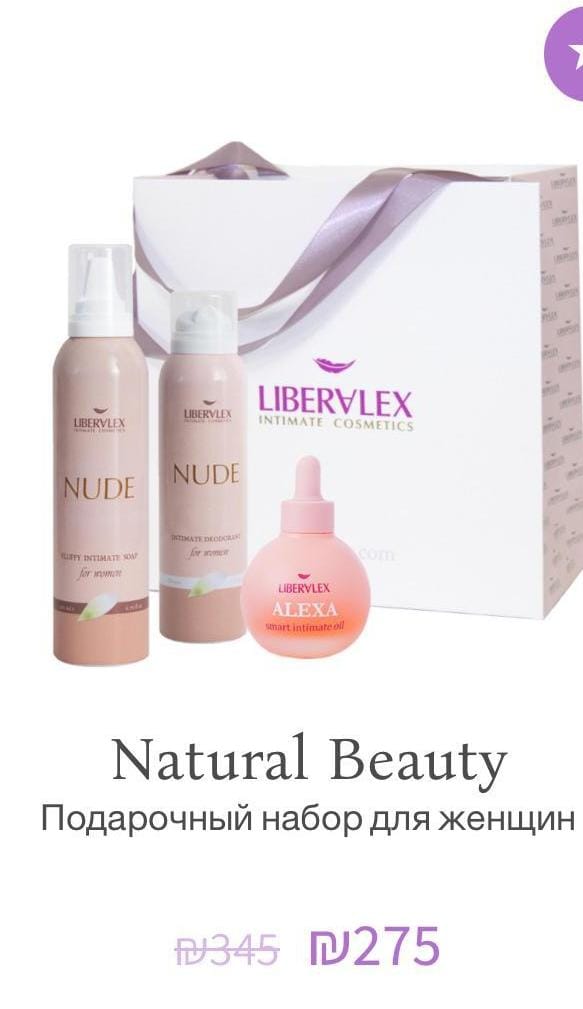 Natural Beauty — это элегантный подарочный набор для женщин, созданный для деликатного и эффективного ухода за интимной зоной. Средства из набора обеспечивают ощущение чистоты, свежести и комфорта, поддерживая естественный баланс кожи.